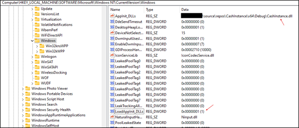 Now to test out our hack, without any methods for DLL injection we will just try it out with the LoadAppInit_DLLs Windows Registry. What this does is that it will get our specified DLL loaded into every process that loads user32.dll (for testing purposes only obviously).