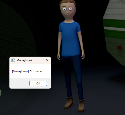 Running the executable shows that the DLL was loaded. This demonstration uses a simple MessageBox payload to show how the same fundamental skills you learn from game hacking can be transferrable into security tradecraft.