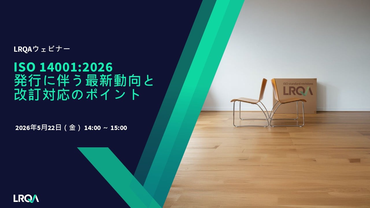 この度、LRQAは ISO 14001(環境マネジメントシステム):2026 の国際規格(IS)発行を受け、2026年5月22日(金)に、改訂内容と実務への影響を解説するライブウェビナーを開催します。