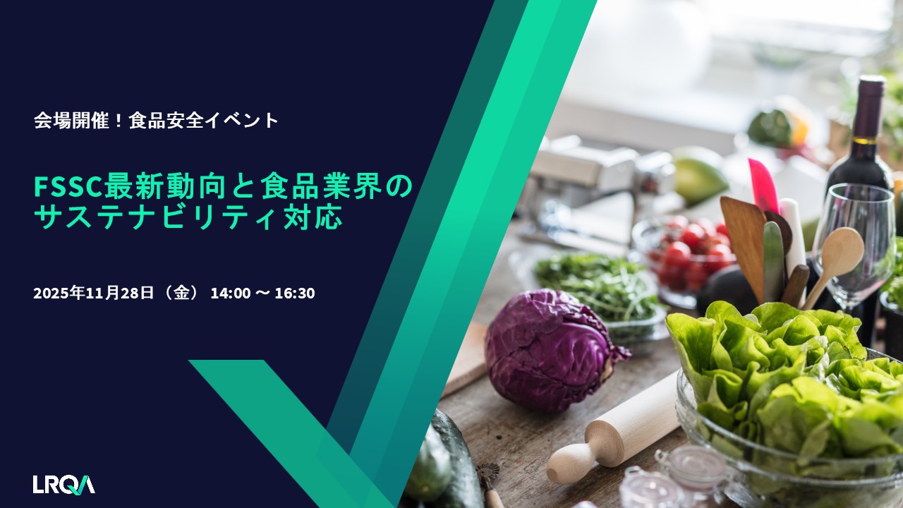 この度、LRQAは2025年11月28日(金)、食品業界における食品安全とサステナビリティ対応の最新動向をテーマにした特別セミナーを開催します。FSSC 22000やFSSC 24000の最新情報に加え、サステナビリティ関連規制への実務対応について、専門家がわかりやすく解説します。